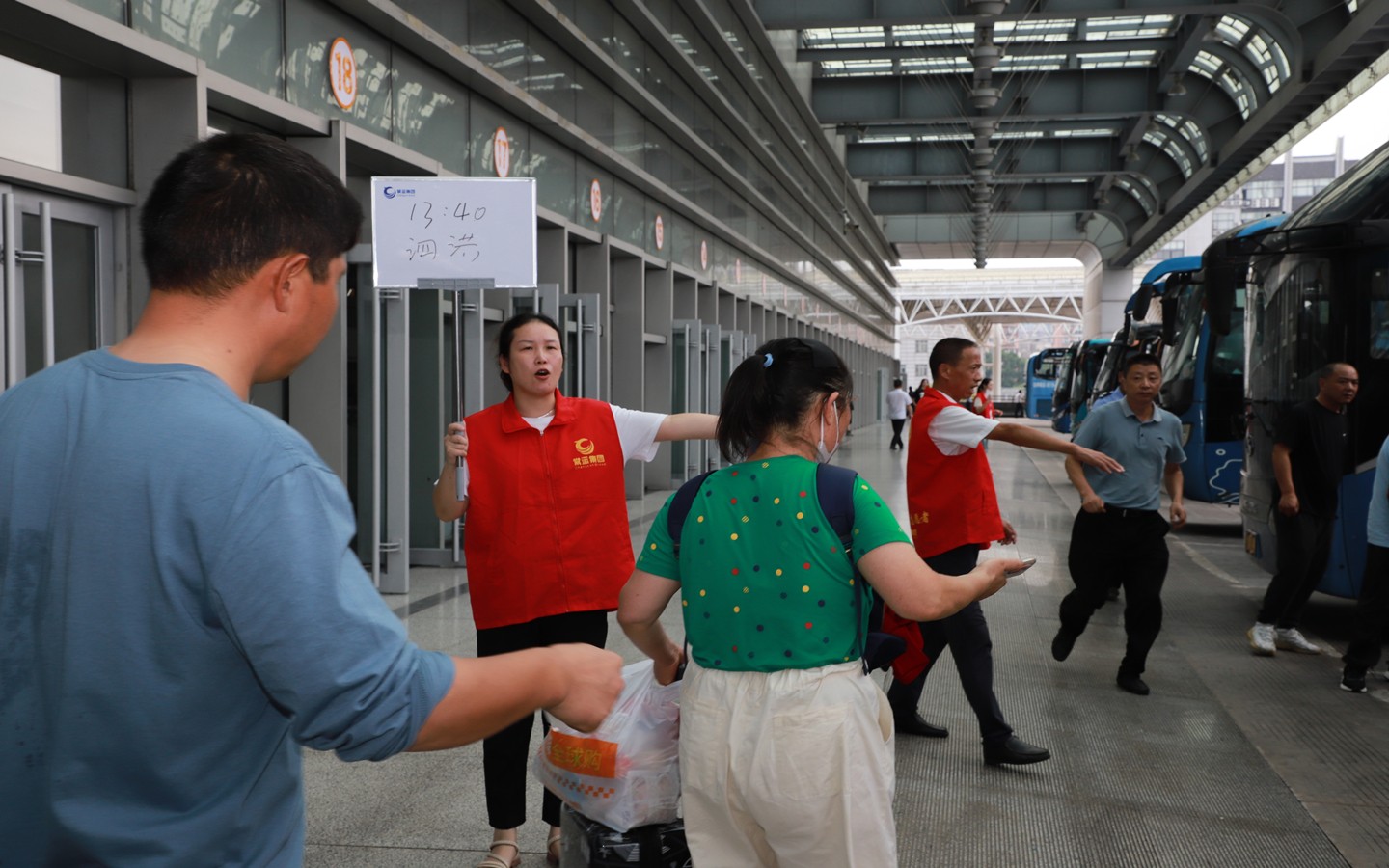 客流高峰期間,公司啟動(dòng)應(yīng)急預(yù)案,在重要崗位增派人手,通過(guò)限流、分流等方式有序引導(dǎo)乘客進(jìn)站,在發(fā)車(chē)口,站務(wù)員、駕駛員、站場(chǎng)車(chē)輛指揮員與志愿者密切配合,分工負(fù)責(zé),有條不紊做好檢票、引導(dǎo)工作,確保旅客順利上車(chē),踏上旅途。
