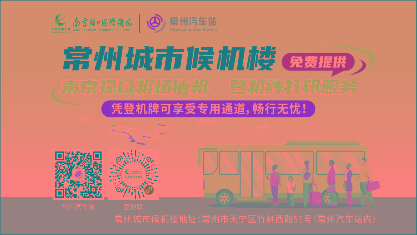 4月1日起,常州至南京祿口國(guó)際機(jī)場(chǎng)專線再次升級(jí),在常州候機(jī)樓即可辦理值機(jī)、免費(fèi)打印登機(jī)牌,并享受祿口機(jī)場(chǎng)專用通道,商務(wù)出行更高效,度假旅行更輕松。